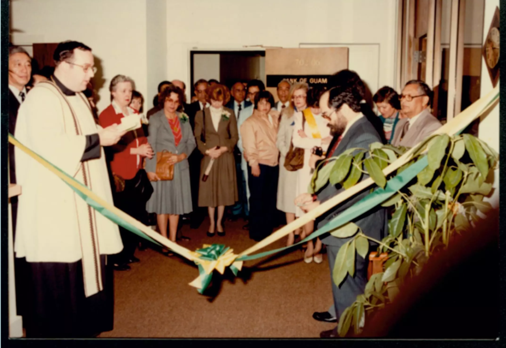 Photo of blessing of Bank of Guam’s San Francisco Branch in 1982 with founder, Jesus S. Leon Guerrero (far right), and former president, Tony Leon Guerrero (third from the right).The bank’s mission was and is centered around empowering the community. It focuses on providing the most essential financial services, supporting entrepreneurship, and nurturing economic growth across the Pacific. This mission not only fills a critical gap in the local financial services but also established Bank of Guam as a pillar of community support and economic empowerment. As it expanded, Bank of Guam never lost sight of the importance of local relevance. This understanding of island economies and the need for strong communities gave it a unique advantage when it initially opened its San Francisco branch in 1982. Despite the geographical and cultural distances, the bank leveraged its deep regional insights to offer valuable services in a city known for its dynamic market.